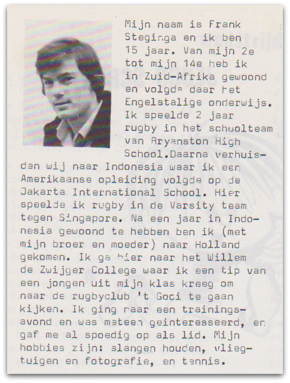 Frank Steginga, in De Scrum van februari 1980: