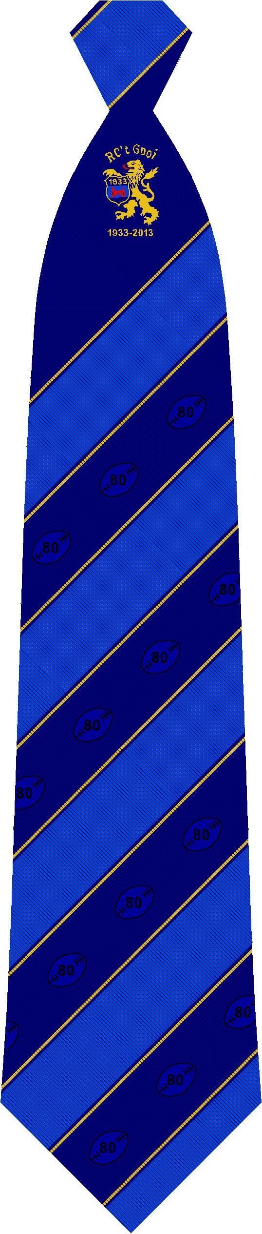 Natuurlijk is er de stropdas van de eigen club. De laatste loot aan de RC ’t Gooi stropdassen-stam is de 80 jaar stropdas uit 2013. Nog helemaal fris en fruitig, zonder brandgaatjes, slijtage en rare vlekken. Moet zich nog bewijzen in de “harde” rugbypraktijk.